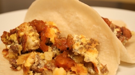 The Picky Apple and I have breakfast for dinner several times a month, typically in the form of an assemble-your-own breakfast taco bar. We’ve used the assemble-your-own approach in the past because The Picky Apple favors lots of eggs with jalapeno added, and I prefer lots of hash browns, cheese, and light on the eggs.