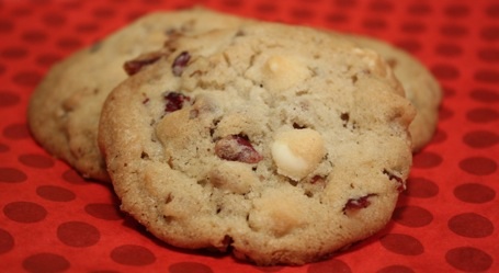 I wanted to make a cookie or bar for this year’s cookie boxes with cranberries, and this recipe caught my eye because of the ginger.  These cookies were yummy, but I would add more crystalized ginger as well as ground ginger next time to make the ginger flavor really “pop.”