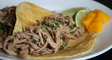 About once a week, I cook a big batch of chicken or pork in the Crockpot in some kind of sauce.  In the past, it has been some form of barbeque sauce.  It is super easy to throw stuff in the Crockpot, and then we have leftovers for several days (great for lunches or dinners when I don’t feel like cooking).  I’ve got several recipes for Pork Tacos in my “Recipes To Try” binder, and this one was especially appealing since it is cooked in the Crockpot.  The original recipe was more complicated, but I took the super lazy route, and it turned out super!  Not only did The Picky Apple like the pork tacos (and ate them for 3 meals, nearly unheard of around here!), but my parents liked them too!  The recipe below includes my changes and additions.