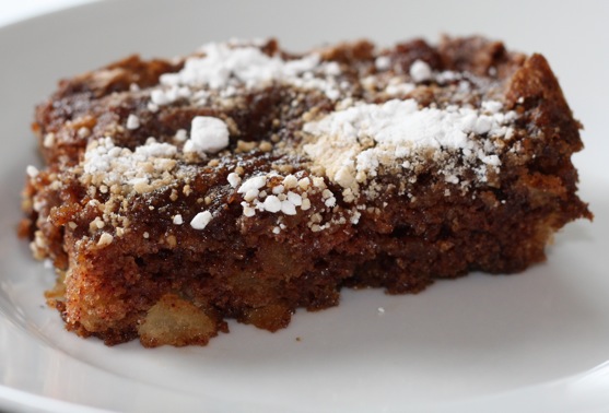 For Art Playgroup this week, I wanted to make something simple and delicious for the mommies. I put this off until about 8:45 last night, so I wanted something really easy that wouldn’t make a big mess. I ran across this recipe for One Bowl Apple Cake at maya*made recently, and decided that sounded perfect! It was a big hit with the Art Playgroup mommies this morning. This cake would be great for breakfast, dessert or snacktime. I pulled mine out of the oven after 30 minutes because I thought it was burning, but I think it could have cooked for about 5 more minutes. Just keep an eye on it!