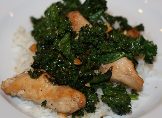 This recipe was a great introduction to kale. To me, kale tastes like a cross between broccoli and spinach. The Picky Apple didn’t care for it, but we’re getting another bunch from our organic co-op this week, so it will definitely be making another appearance at dinner sometime soon! Kale is one of those vegetables that gets bitter the longer you let it sit in your fridge, so ours may have been a little on the bitter side. I’ll cook it sooner next time!