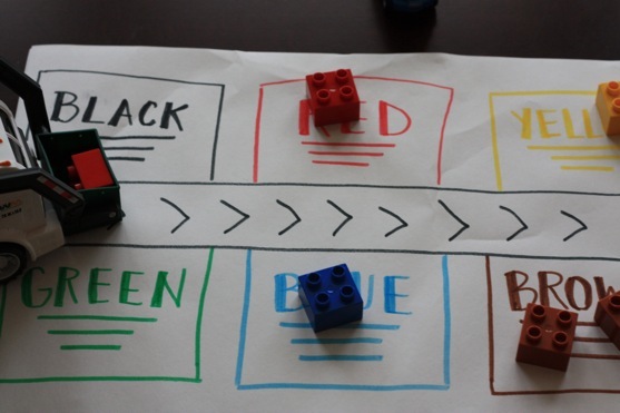 I can sympathize with you! 2 year old boys and “sit down” activities don’t always work out! I like the idea with the garbage truck & colored blocks.