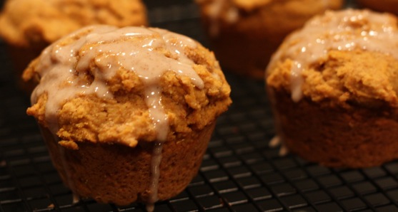 Whole Wheat Pumpkin Muffins with Cinnamon Glaze