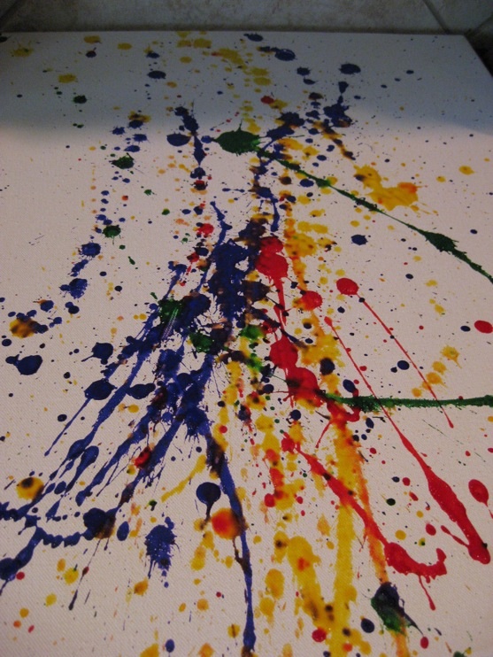 The kids all had a really great and messy time, and the splatter paint on canvas went well. I thought using canvas would be better for this age group so they could each have their own space. You could also splatter paint on a large sheet, drop cloth, or roll of butcher paper if you wanted to make it a group project.