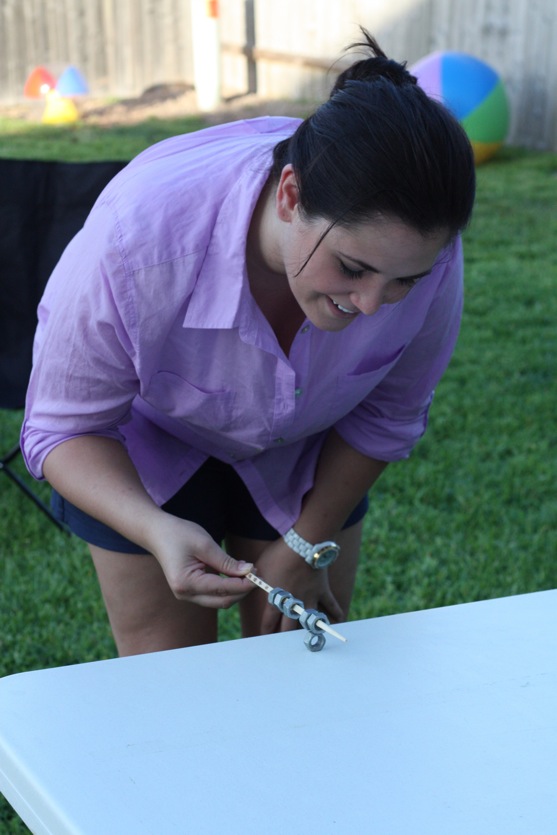 Have you ever seen the game show on NBC called Minute to Win It? Hosted by Guy Fieri, contestants on this show complete increasingly difficult challenges using household items in one minute or less. The Picky Apple and I have watched it a few times, and we always say “I could do that!” We decided to put ourselves (and others) to the test. Inspired by a post on The Dating Divas about a couples Minute To Win It Party, we decided to host our own Minute To Win It Party. We had 12 people, including us, and it was SO MUCH FUN!