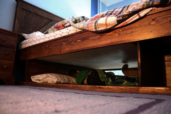 This wasn’t exactly what we had in mind when we built The Littlest Apple’s new bed with storage space underneath.