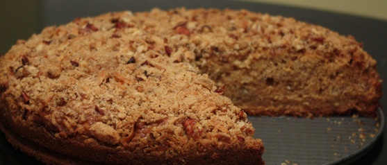 Spoon batter into prepared pan and spread evenly.  Sprinkle with crumb topping.  Bake 50 to 55 minutes or until toothpick inserted in center comes out clean.  Cool cake in pan on wire rack 10 minutes.  With small metal spatula, loosen cake from side of pan and remove  Cool completely.  (Cake can be wrapped tightly in plastic wrap and kept at room temperature up to 1 day.)