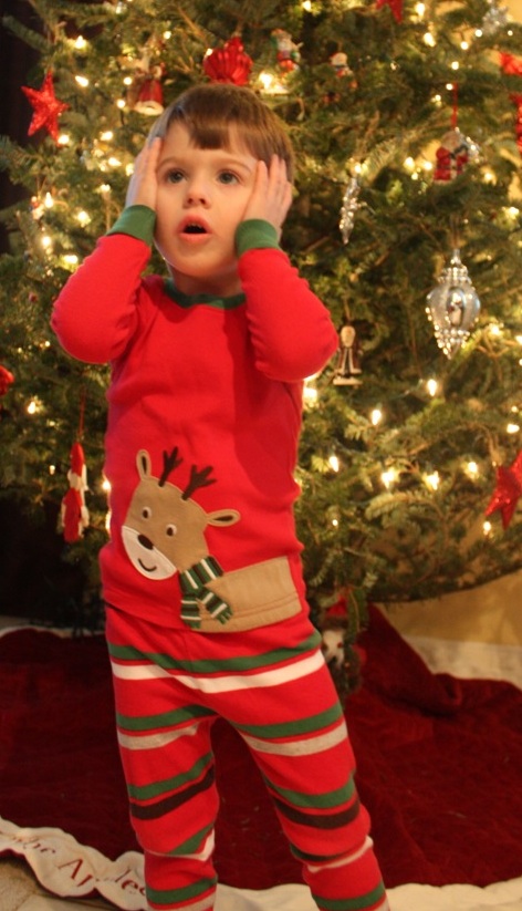 Love his PJs they are adorable. I must get Monkey a pair for Christmas eve… I think he’d love it.