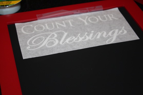I was itchin’ to use my chalkboard spray paint again and I’ve been wanting to try out some of the vinyl letters I keep seeing everywhere, so an idea was born!! Count Your Blessings Chalkboards!!