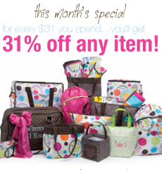 I’d like to welcome back Thirty One consultant Cheryl Graves as a Picky Apple sponsor for the month of March!  The new Spring/Summer Catalog is out, and there is a GREAT special going on this month: For every $31 you spend, you’ll get any purse 1/2 off! Isn’t that neat?!