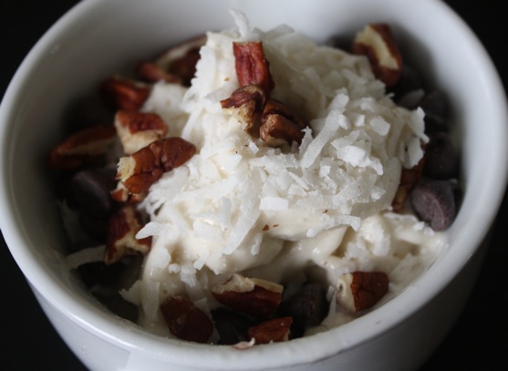 I heard/read somewhere (though I have no idea where) that frozen bananas can make a great substitute for ice cream if you pulse it in a food processor for a minute or two until it is a custard-y texture. And it absolutely tastes like ice cream, particularly if you love Chunky Monkey Ice Cream. I like to add chopped pecans, coconut and (sometimes) chocolate chips to mine. A teaspoon or so of Nutella mixed in the food processor is pretty fantastic too!