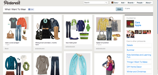 I’ve known about Pinterest for a while, but just as I did with Facebook, I resisted it for the longest time. Â One more time- sucker I didn’t need. Â But then last week, I begged a friend for an invite, and now I’m hooked!