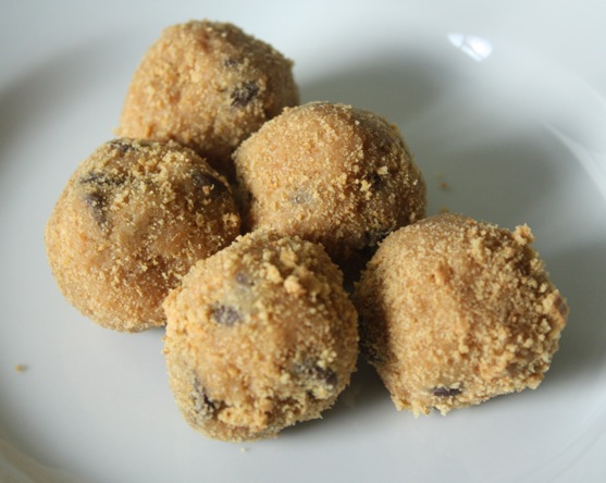 My mom used to make these delicious little treats for me when I was younger, and I absolutely LOVE them.  I recently made them for The Littlest Apple, and he loves them too!  From my super picky eater, that’s saying something!  These sweet treats are super easy to throw together, and since there is no baking or cooking involved, this is a great opportunity to let your kids help out.  The Littlest Apple helps me smash the graham crackers (I think that’s his favorite part!) , measure the ingredients, stir them together, and roll the snacks in the graham cracker crumbs.   If you’re dealing with peanut allergies, I imagine you could substitute almond butter or other nut butters.