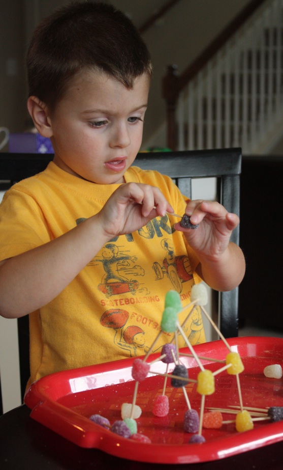 When I found them a few weeks ago, I thought we could put them to good use. Â I grabbed some toothpicks and The Littlest Apple and I got busy building.