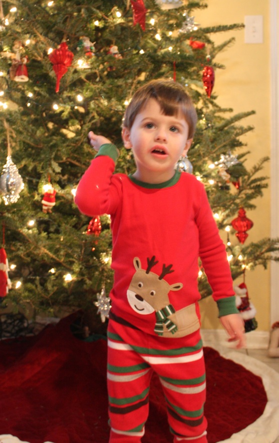 The Litttlest Apple’s current weight is 34.6 pounds, and he’s 39 inches tall. Â (He’s 4 years and 3 months old.) Â That makes him “perfectly proportional” according to the GI. Â He’s still small for his age, but he actually appears to have a little bit of body fat now, especially in his belly and cheeks. Â Here he is with The Picky Apple after his preschool Christmas Program…