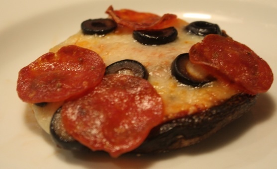 Even though I’m still going strong with my Primal/Paleo lifestyle, we have pizza night fairly regularly around here. Â I make homemade crust for the guys, and they add their own toppings. Â There are quite a few Paleo pizza crust recipes out there, but I’ve discovered that portabello mushrooms make a great base for my own pizza. Â I buy a pack of 4 portabello mushrooms and top with a tablespoon or two of sauce, mozzarella cheese, pepperoni slices and black olives. Â This is such a great substitute for anyone who is gluten-free or looking for a healthier pizza alternative.